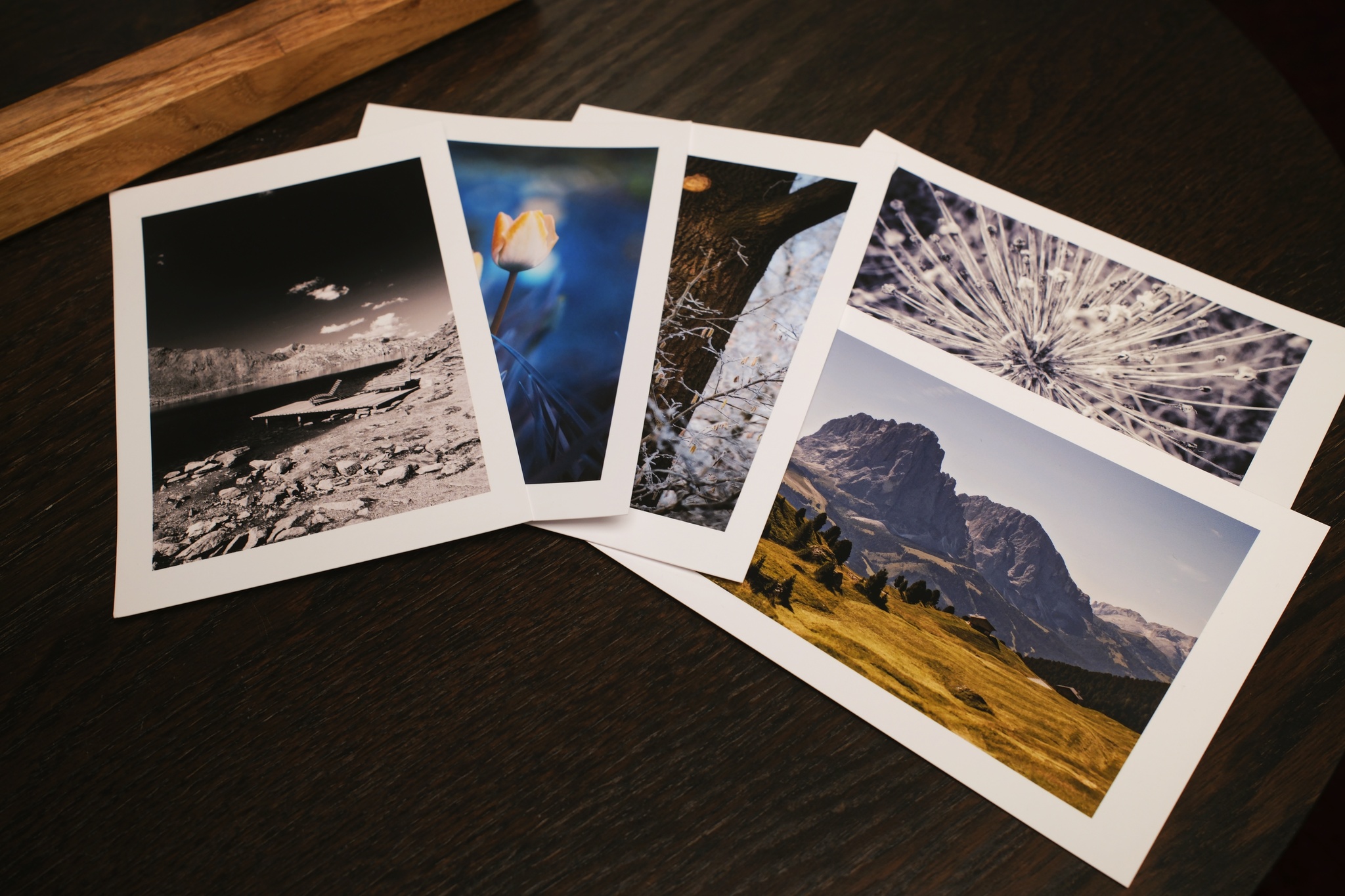 Alle Karten haben einen ca. 9mm breiten weißen Rand. Der genaue Rand ist aber vom Bildformat abhängig. Die Karten sind auf der Vorderseite unten Rechts mit Bleistift signiert. (Gib bitte im Kommentar-Feld an wenn du das nicht möchtest.)